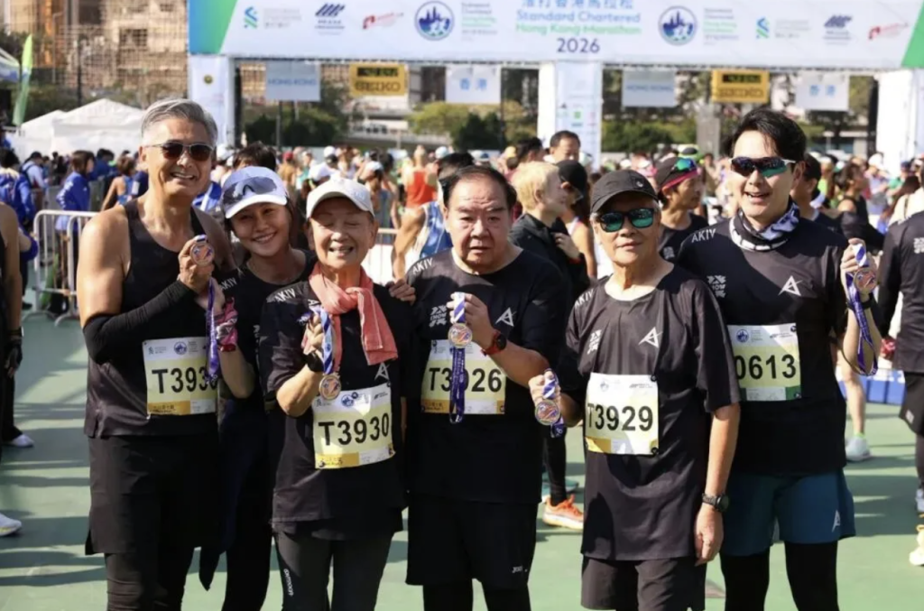“今天的天气又有风,又有太阳,跑完真是开心得不得了。”在抵达港马终点所在的维多利亚公园之后,周润发和他的好友们一起接受了采访,并且还打趣地表示,这次作为陪跑带出来的成绩比自己的半马成绩还是好了一些,“我们几个加起来都几百岁了,真的不容易,我们志不在成绩,志在完成。重点是和观众们打打招呼。”